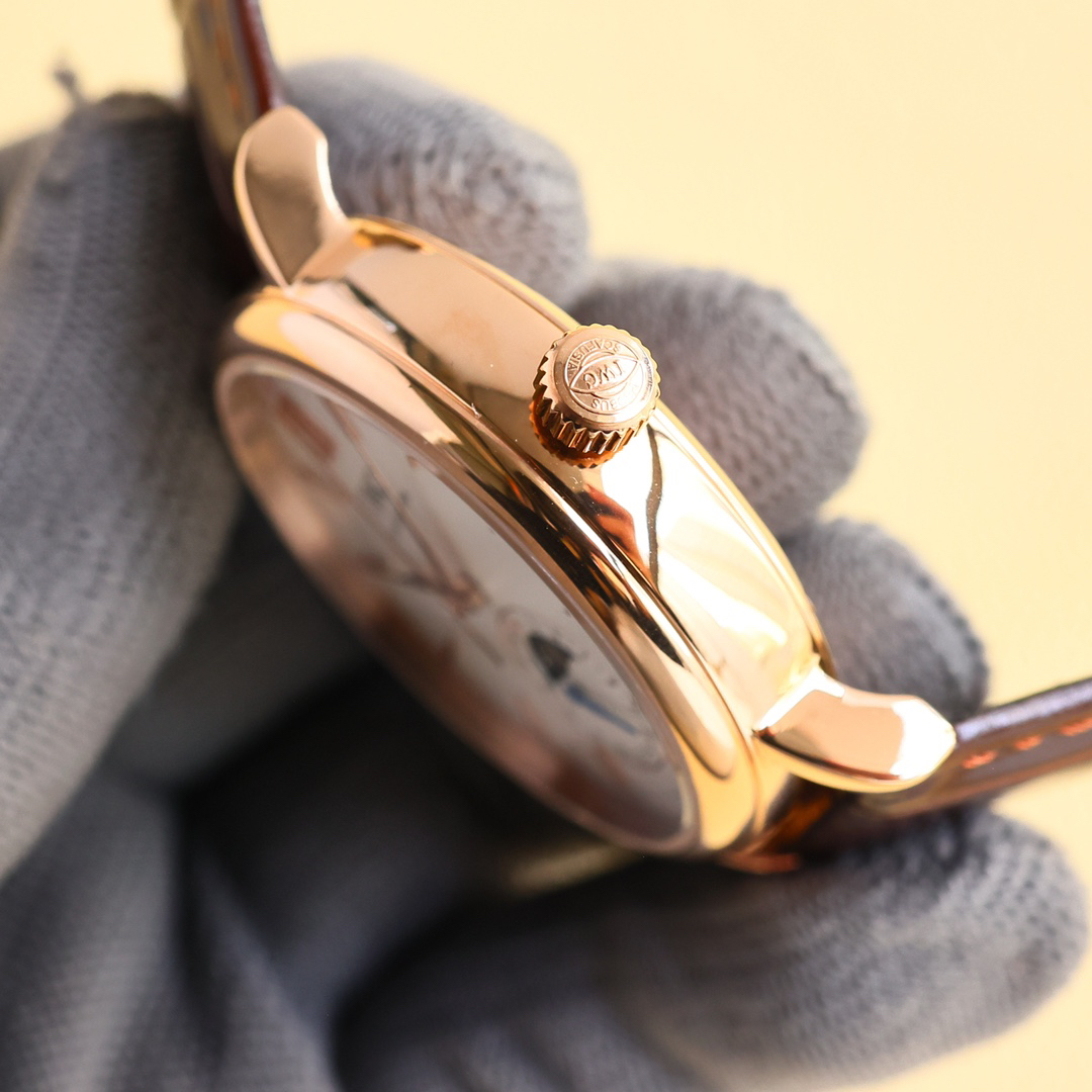 This pointer-style date wristwatch [Celebration], part of the Moon Phase series, is a men's timepiece featuring a precise Swiss ETA 2824-8 movement (true date at 6 o'clock and 24-hour moon phase function). It has a 39mm case diameter, a 316L stainless steel case, scratch-resistant sapphire crystal, and excellent water resistance. Paired with an Italian leather strap for a comfortable and snug fit, it embodies the purest traditions of haute horlogerie. Suitable for various business occasions, its understated elegance and sophistication are undeniable.