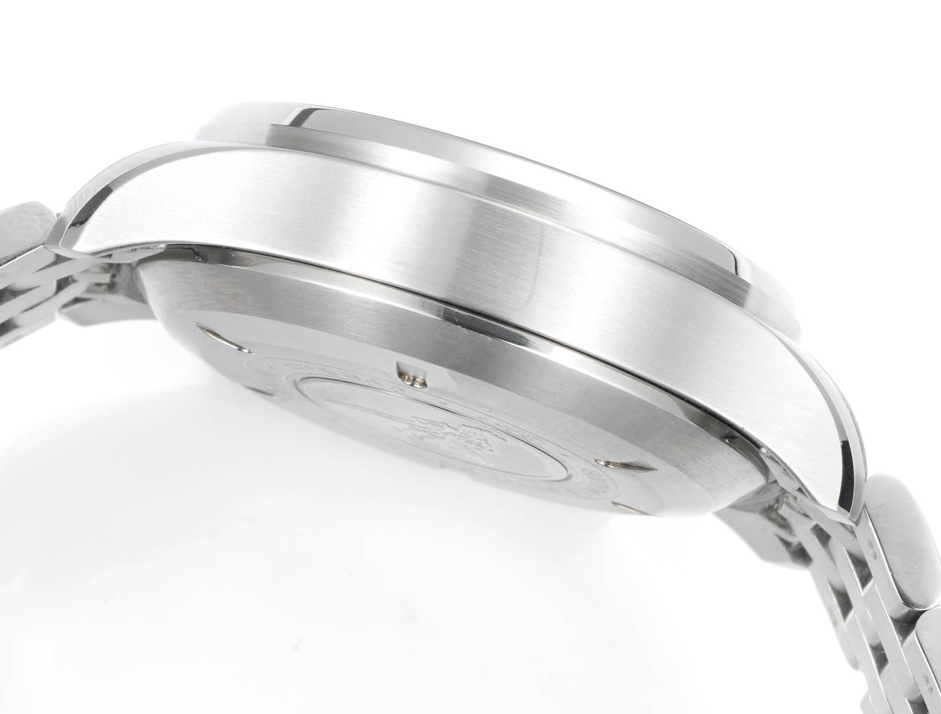 The new transparent case back houses a modified 7750 movement, the in-house 69385 automatic mechanical movement, providing a 72-hour power reserve when fully wound. The double-layer light blue anti-reflective coating enhances readability, maintaining the classic look of its predecessor—simple design, precise internal mechanism.