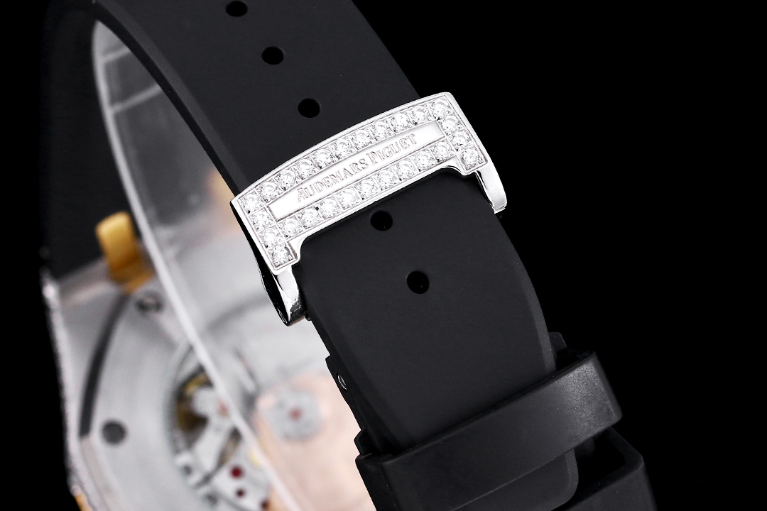 This new bezel features a large diamond-set bezel and is a fully automatic mechanical men's watch with an imported 324 movement. Part of the Royal Oak 50th Anniversary series, it boasts a 316L stainless steel case, a solid, heavy-duty steel bracelet, and select imported diamonds for a dazzling and precise timekeeping experience. The ultra-luxury version features a full hand-set diamond design, made of 316L steel with an imported cowhide strap. Dimensions: 42mm x 12mm.