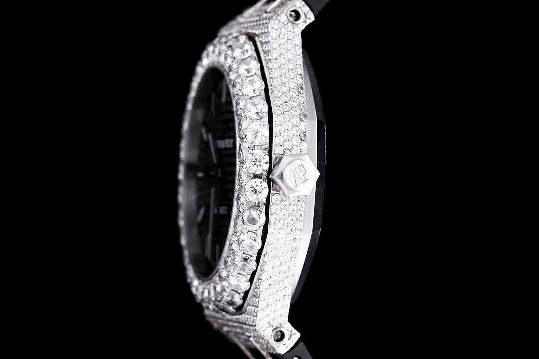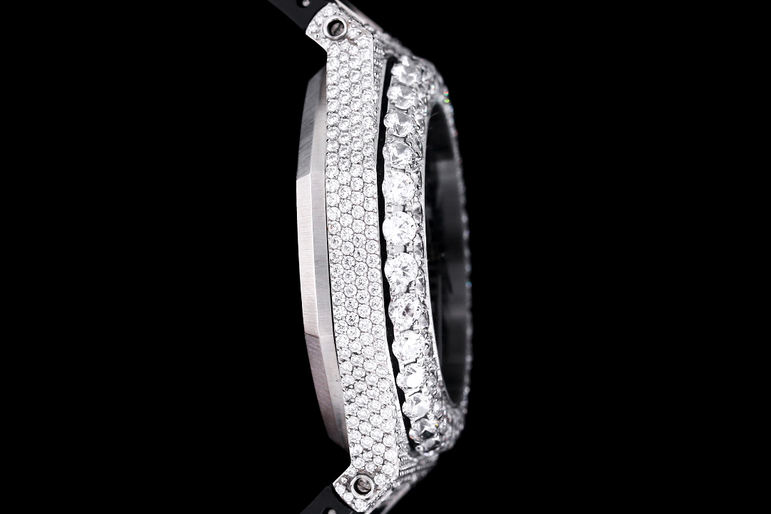 This new bezel features a large diamond-set bezel and is a fully automatic mechanical men's watch with an imported 324 movement. Part of the Royal Oak 50th Anniversary series, it boasts a 316L stainless steel case, a solid, heavy-duty steel bracelet, and select imported diamonds for a dazzling and precise timekeeping experience. The ultra-luxury version features a full hand-set diamond design, made of 316L steel with an imported cowhide strap. Dimensions: 42mm x 12mm.
