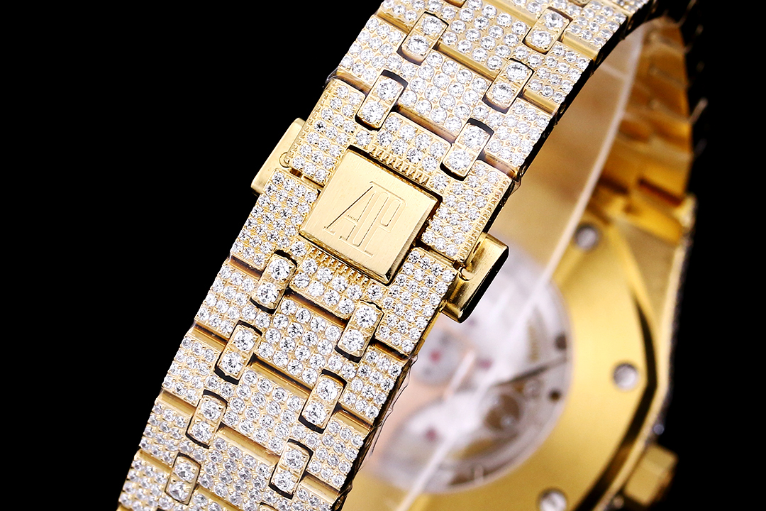 This new bezel features a large diamond-set bezel and is a fully automatic mechanical men's watch with an imported 324 movement. Part of the Royal Oak 50th Anniversary series, it boasts a 316L stainless steel case, a solid, heavy-duty steel bracelet with selected imported diamonds, and a dazzling, precise, and stable timekeeping. It is made of 316 steel with an imported cowhide leather strap. Dimensions: 42mm × 12mm.This new bezel features a large diamond-set bezel and is a fully automatic mechanical men's watch with an imported 324 movement. Part of the Royal Oak 50th Anniversary series, it boasts a 316L stainless steel case, a solid, heavy-duty steel bracelet with selected imported diamonds, and a dazzling, precise, and stable timekeeping. It is made of 316 steel with an imported cowhide leather strap. Dimensions: 42mm × 12mm.