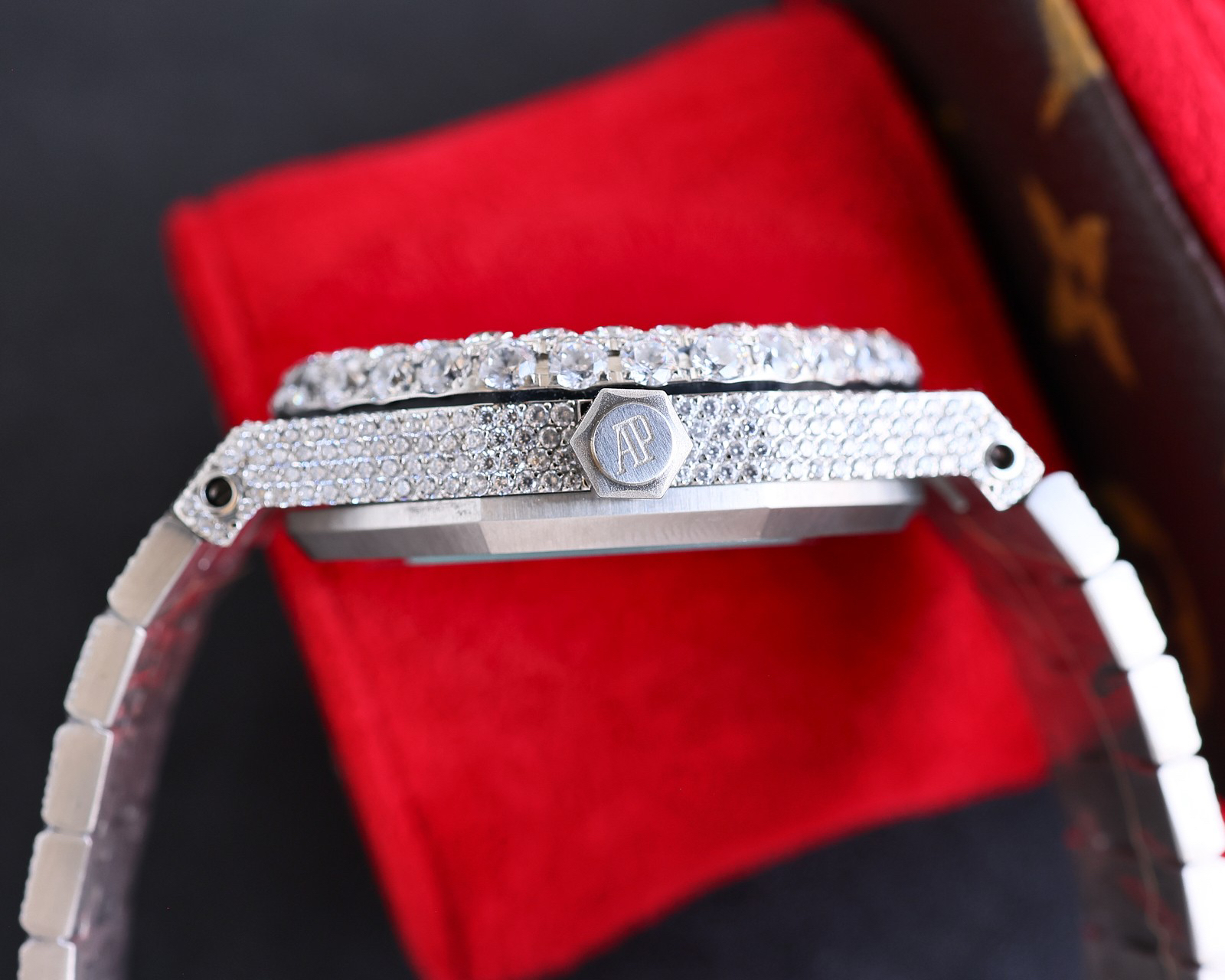 A brand new bezel with a large diamond-set bezel, this is a fully automatic mechanical men's watch with an imported 324 movement. Part of the Royal Oak 50th Anniversary series, it features a 316L stainless steel case, a solid, heavy-duty steel bracelet with selected imported diamonds, and a sparkling, precise, and stable timekeeping. It is made of 316L steel and has an imported leather strap. Dimensions: 42mm × 12mm