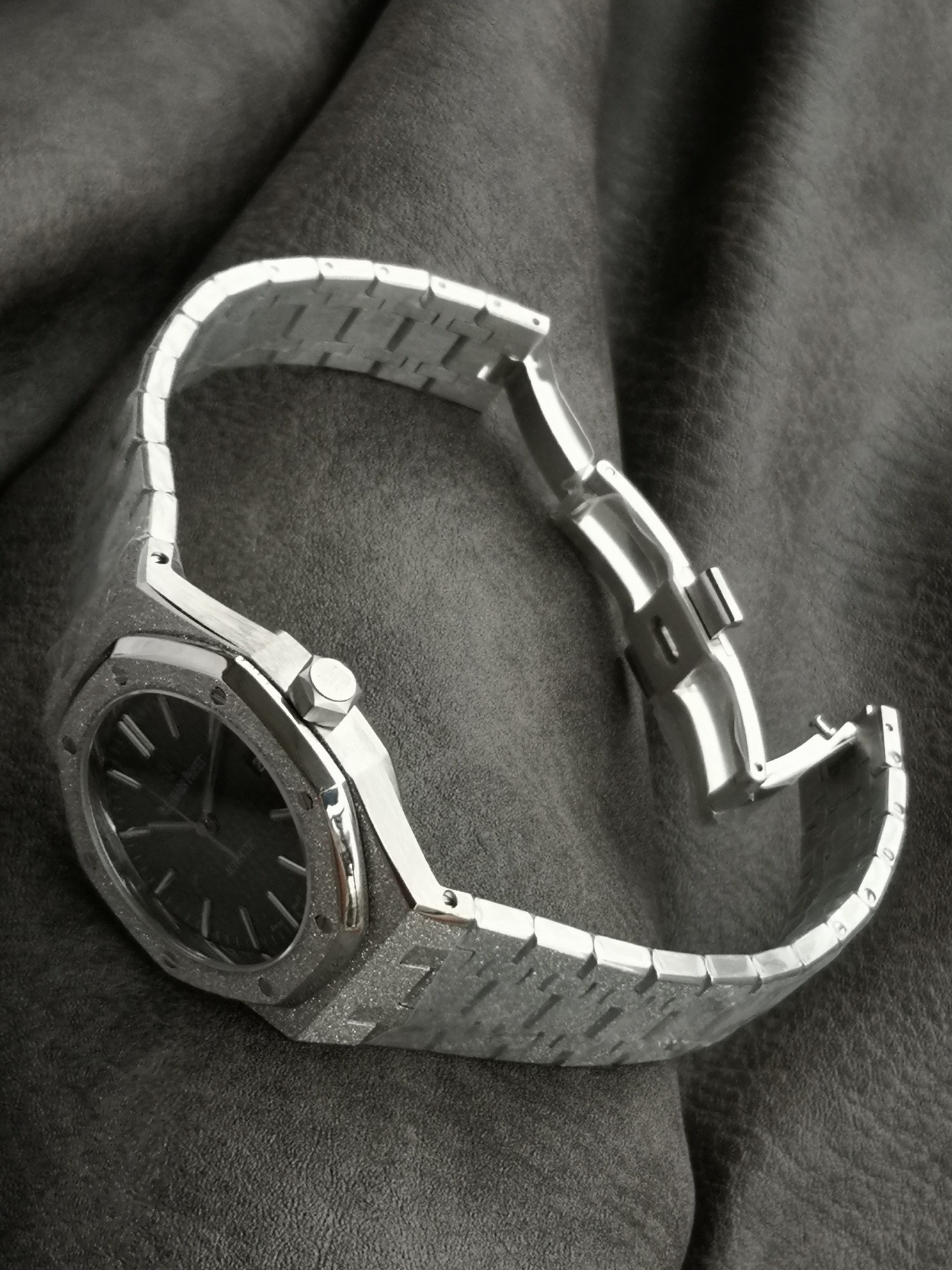 The most crucial element of this steel watch is the bracelet itself. The bracelet features a custom-molded finish that creates a delicate brushed texture without any sharp edges that could cut the wrist. The thickness and joints of the bracelet are consistent with the watch face, demonstrating meticulous attention to detail. The end links connect to the watch head with a similarly designed, cushioned movement for a more comfortable and snug fit on the wrist. The clasp's opening and closing design, along with its engraving, are of the same high quality. Powered by the 3120 movement, it boasts precise timekeeping, and notably, the central axis of the hands is solid.