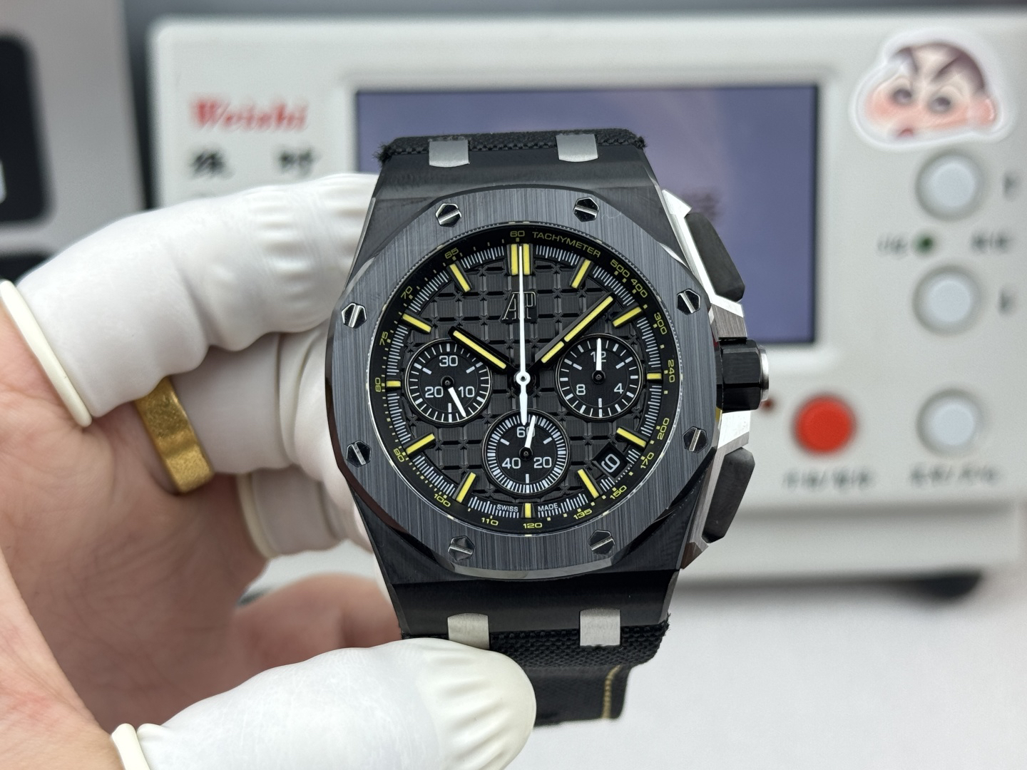 The bezel is made of imported Korean ceramic, and the crystal is sapphire glass.