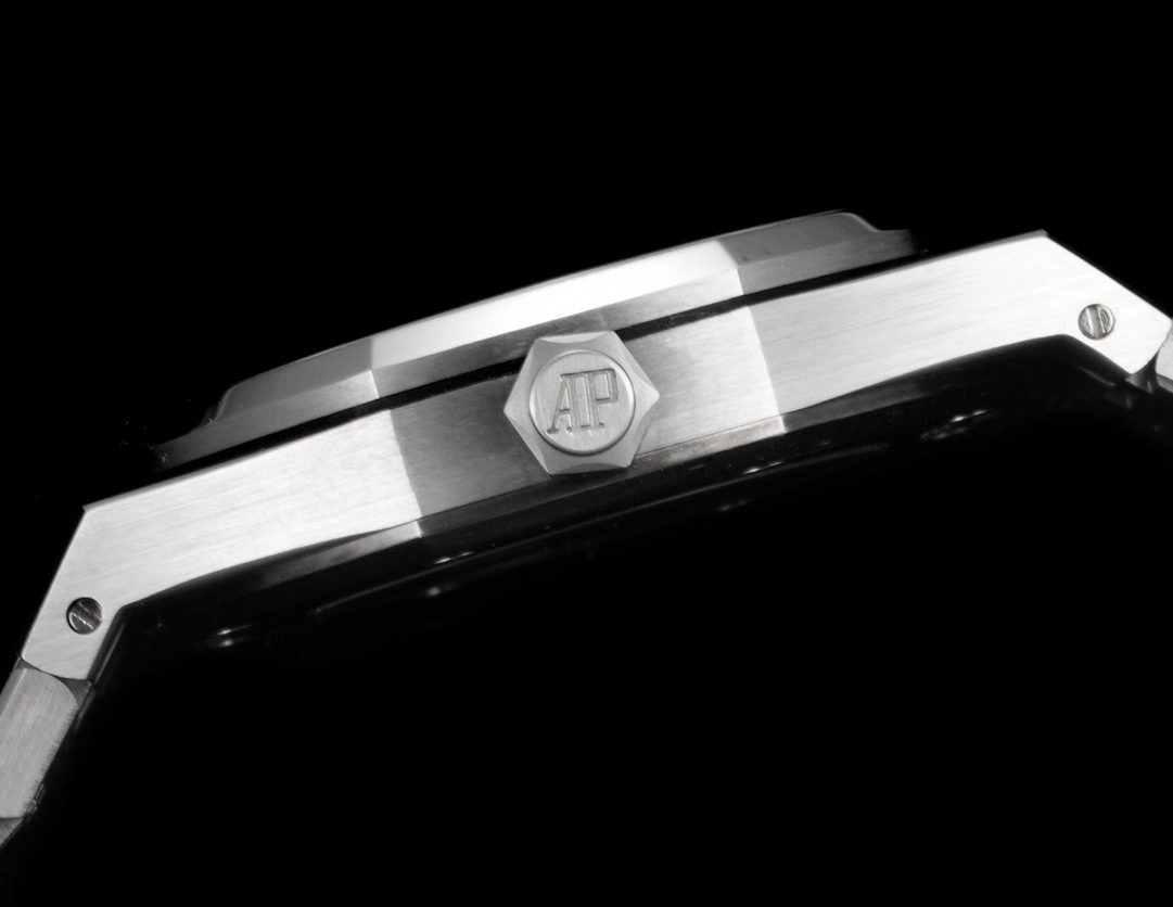 41mm diameter, 9.9mm thickness. Dark gray dial shape: round. Dial material: skeletonized dial with rose gold luminescent applied hour markers and Royal Oak hands. Crystal material: anti-reflective sapphire crystal. Crown material: stainless steel, screw-down crown. Case back: transparent, anti-reflective sapphire crystal.