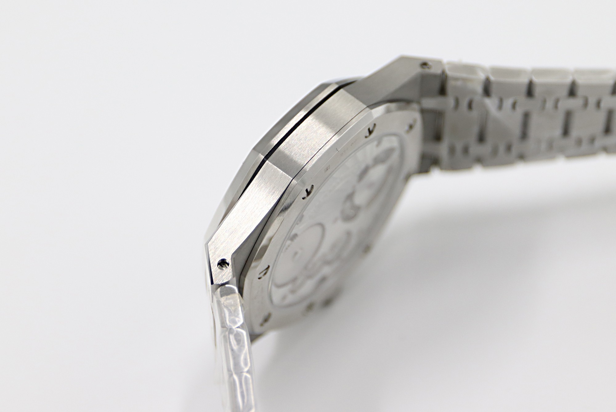 The new Royal Tree Ultra-Thin Tourbillon watch, unveiled at the Geneva Motor Show, reinterprets the iconic "Tapisserie" pattern as a new sunburst design, offering a fresh visual experience. The sunburst dial originates from the tourbillon at 6 o'clock, with the size of the checks gradually increasing outwards, creating a beautiful color gradient effect. The sunburst pattern is dazzling and aesthetically pleasing. The checkered dial is paired with white gold luminescent applied hands, featuring Swiss Superluminescent technology for clear time reading even in dark environments. The case has a diameter of 41 mm and a thickness of 10.6 mm.