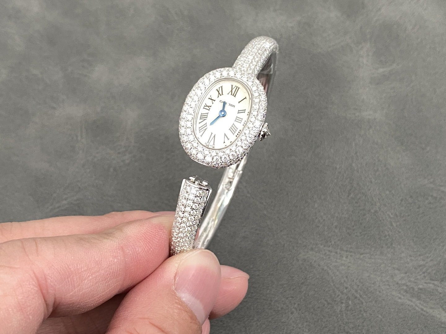 Bathtub series, fully set with moissanite diamonds. Sizes: 15mm, 16mm, 17mm.