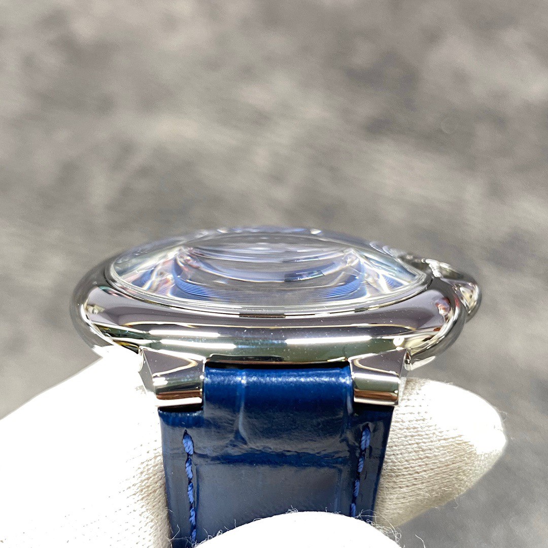 Blue dial. The watch measures 42mm x 13mm, with a gleaming 316L stainless steel case. Powered by the Seagull 2824 movement. The 2824 movement is available with a choice of a premium American leather strap or a top-grade 316L stainless steel bracelet.
