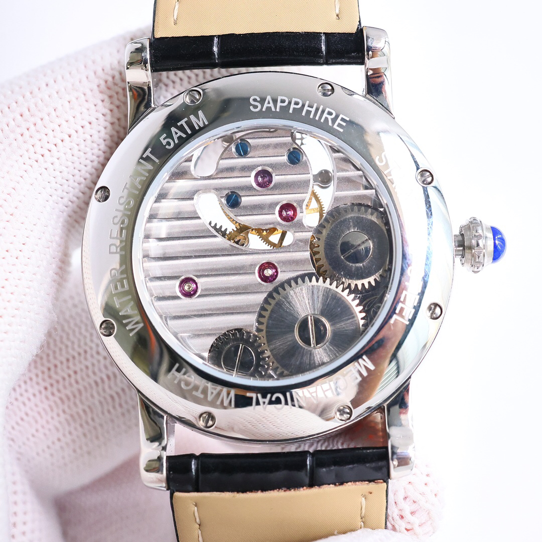 The refined case of this true tourbillon watch provides an ideal stage for imaginative designers to showcase its mechanical components. Developed meticulously by the Cartier watchmaking workshops, this new tourbillon embodies all the hallmarks of a rich and ever-evolving watchmaking heritage. The unique three-bridge tourbillon cage acts as the seconds hand; this exquisite floating mechanism draws all attention, seemingly unstoppable. Viewed from any angle, the floating mechanism finally finds true freedom, and under the magic of watchmaking experts, pure mechanical art is elevated.