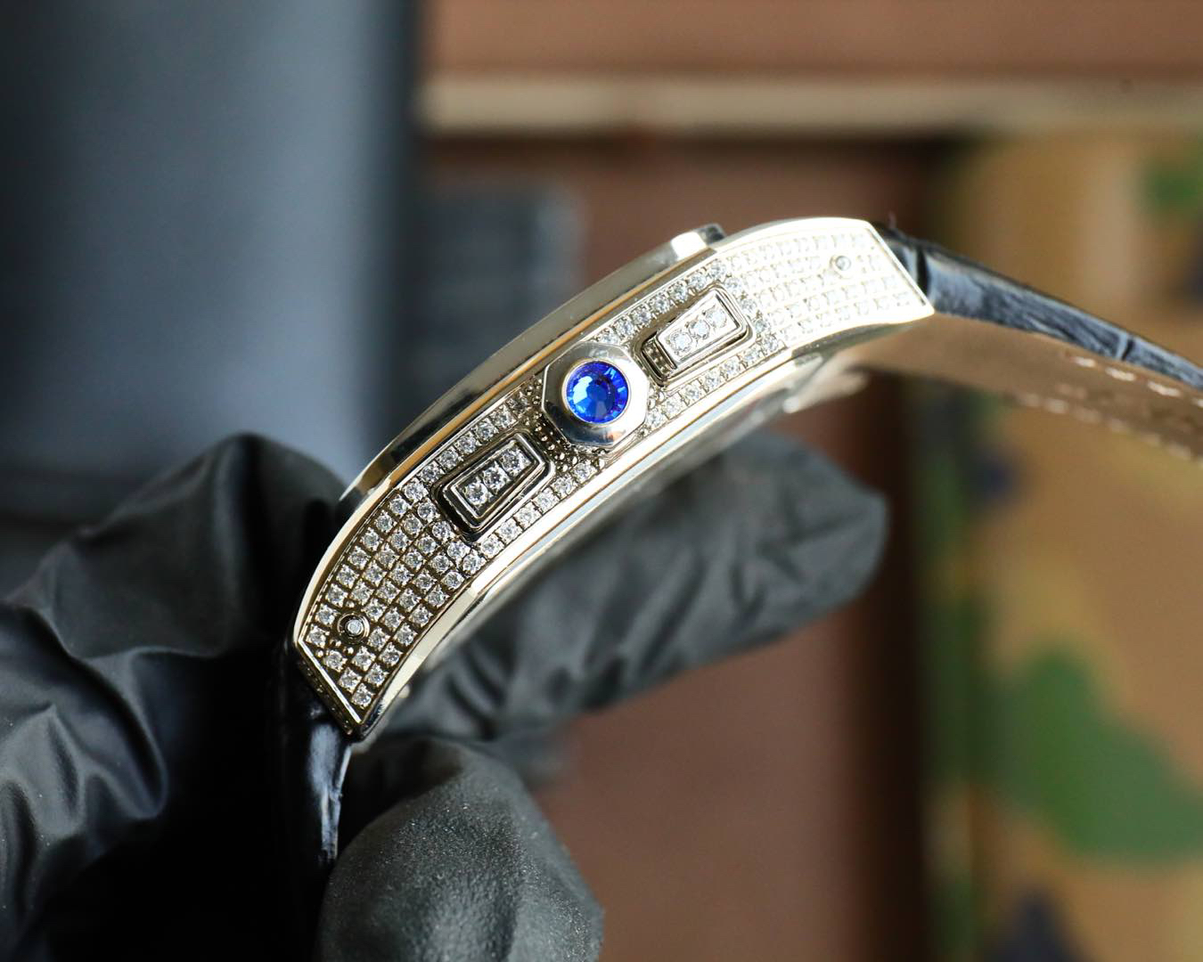 Santos Full Diamond Series 40mm*14mm Cal imported quartz movement, men's 39mm*13mm, women's 33mm*13mm high-strength blue light glass, top-grain cowhide leather strap, original buckle, classic case shape, timeless Santos.