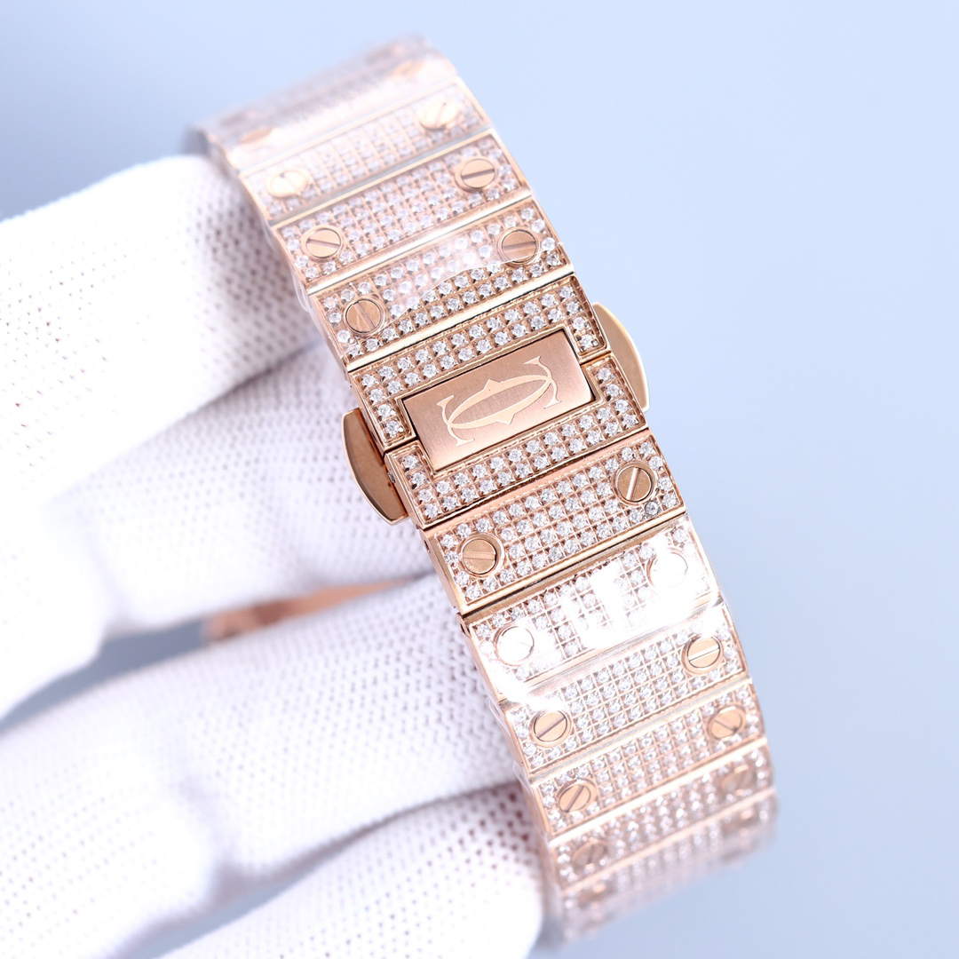Features two Cartier inventions: the "Smartlink" bracelet adjustment mechanism and the "QuickSwitch" strap quick-change mechanism, making the strap very comfortable and snug on the wrist!