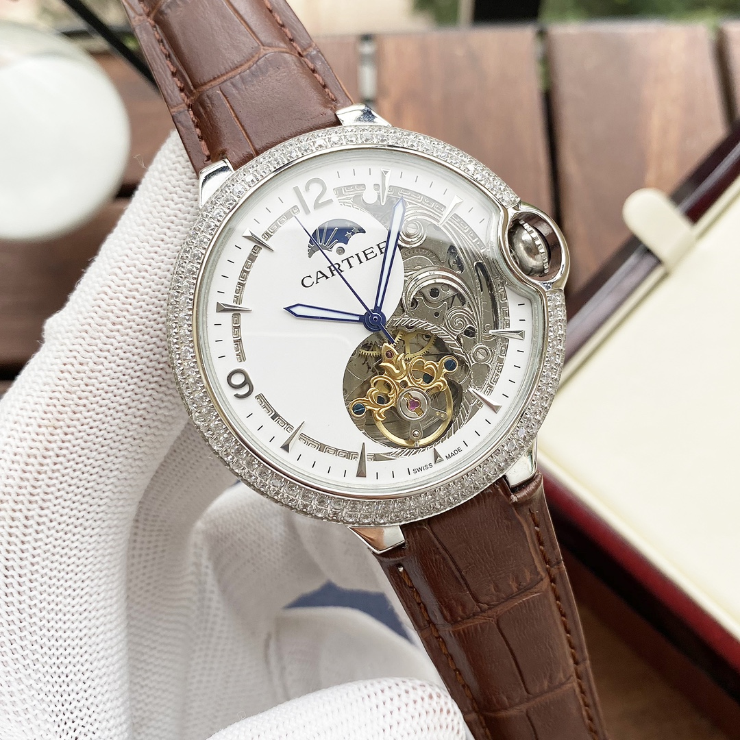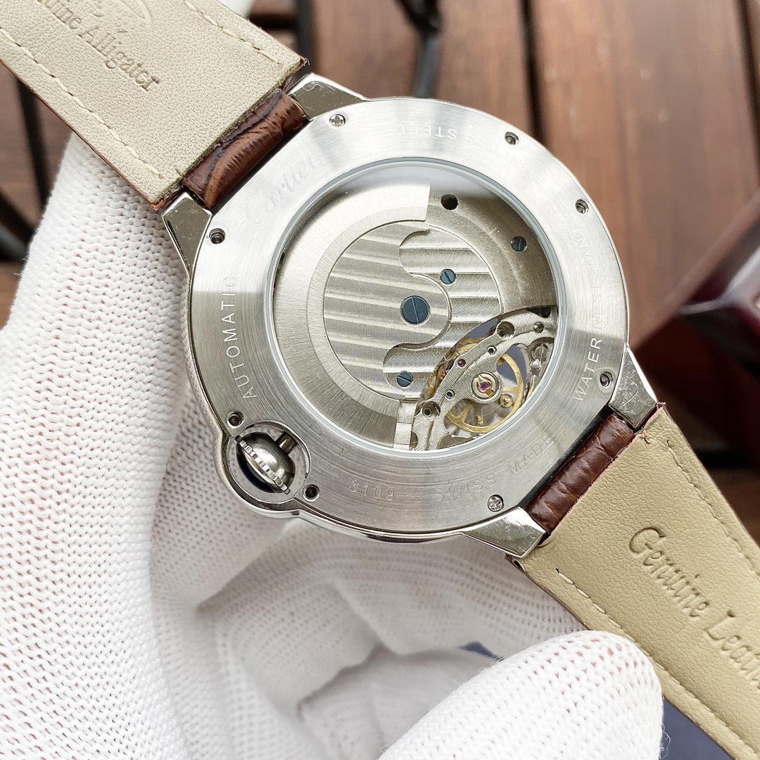 Automatic mechanical movement, mineral-strengthened glass, 316L stainless steel case, genuine leather strap. Suitable for both business and casual occasions, exuding elegance. Dimensions: 44mm diameter, 12mm thickness.