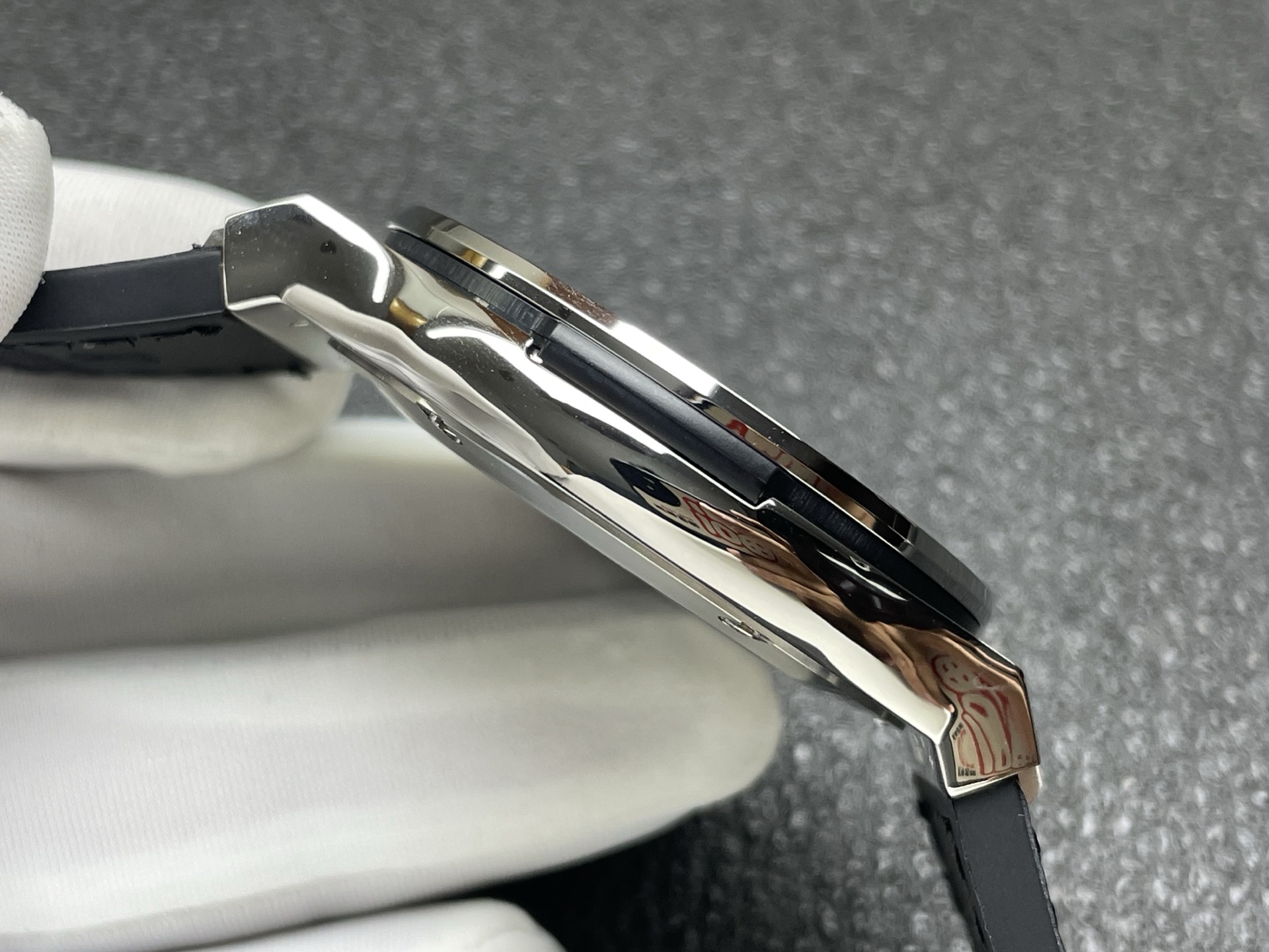 With a diameter of 45mm, a 316L stainless steel case, scratch-resistant sapphire crystal, and diamond settings, this classic fusion chronograph watch is equipped with the 7750 multi-functional chronograph movement. It resonates with different times and spaces, like painting, music, and timepieces. It is unique and perfectly matched with its unique partner.