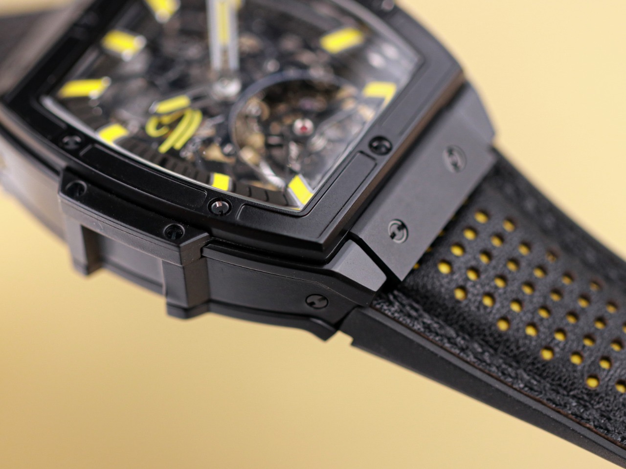 Custom-made, mass-produced HUB 9006 manual-winding tourbillon movement, featuring a double-sided crystal dial on all gears, 48-hour power reserve, and a 5±1 day accuracy. The case is made of pure water-jet cut stainless steel plated with thickened 18K rose gold and platinum. The strap is made of top-grain cowhide on the front and imported Thai natural rubber on the back, offering flexibility, comfort, and water resistance. Both the front and back crystals are sapphire crystal glass, scratch-resistant and highly transparent. The watch boasts an overall elegant and versatile design.