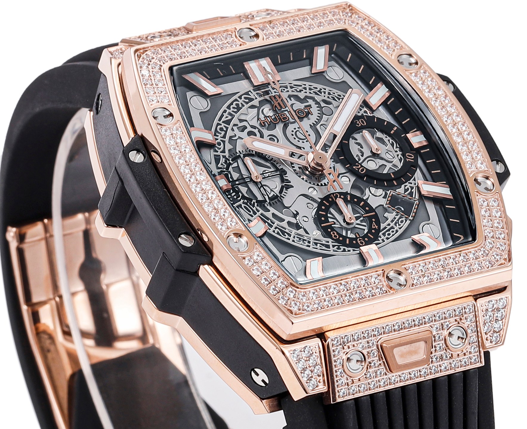Inspired by racing, the new Spirit of Big Bang limited edition watch is here! This timepiece combines all the iconic elements of the Spirit of Big Bang collection, featuring a new tonneau-shaped case. The case utilizes titanium and resin, employing a "sandwich" structure built with six H-shaped screws to convey the concept of "fusion of technologies." It boasts a perfectly customized HUB4700 movement and a bespoke fluoroelastomer strap. The watch also features a "one-click" quick-change strap system, allowing the wearer to easily and quickly change straps with a simple press!