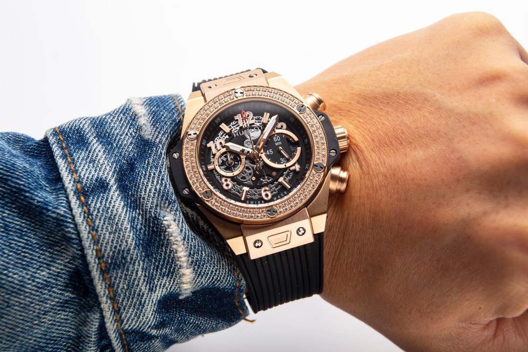 The case is meticulously polished using CNC technology, ensuring attention to detail in every aspect. The bezel showcases Hublot's unique brushed finish. The strap is available with imported rubber or top-grain calfskin.