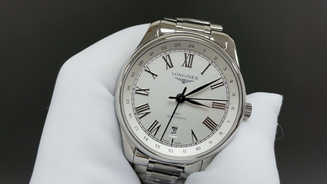 The movement uses an imported 2836 integrated GMT dual time zone, synchronized and with precise timekeeping. The watch has a 40mm diameter and is equipped with an anti-reflective sapphire crystal. The leather strap is made of imported Italian grey top-grain calfskin. The Roman numerals are more vivid and add visual depth, while the black hands better display the GMT function. Master Collection watches have always been known for their timeless classic and elegant understated style.