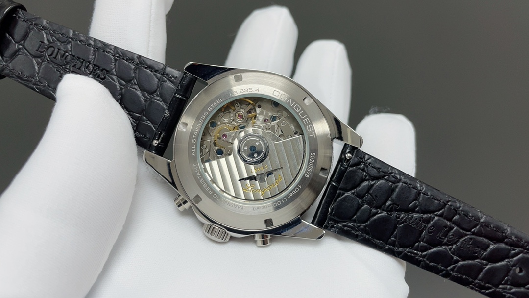 The dial features a unique "panda eye" design and is available in several classic color combinations, including black and white, deep sea blue, mountain green, and champagne gold. It also features a three-register chronograph and a stylish black ceramic bezel. The Conquest series is a fashionable yet retro multi-functional chronograph watch. With a 42mm dial diameter and 100m water resistance, it easily handles everyday water use. Whether paired with casual or formal attire, it showcases the wearer's unique taste and personality, exuding a high-end feel on the wrist.