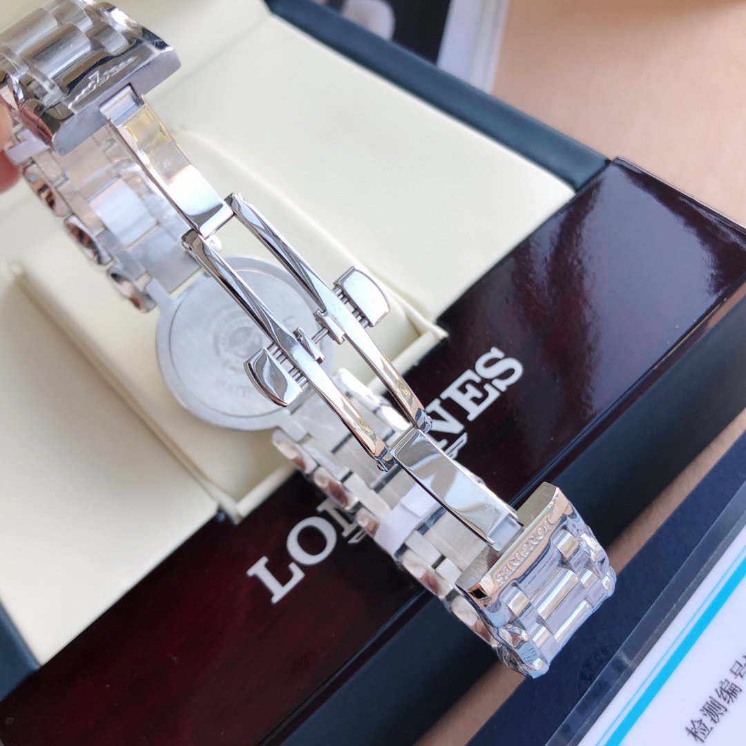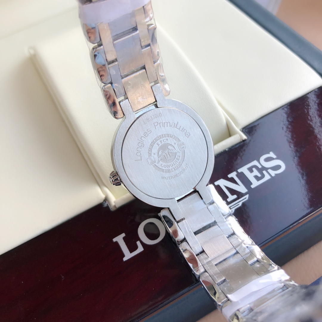 Set with 44 VVS-grade genuine diamonds around the entire bezel, and featuring blued Roman numerals on the dial! The timeless Longines La Grande Classique collection embodies the oldest manufacturing aesthetics of the Longines brand, renowned for its winged hourglass logo. The full, bright moon is captivating, and the 26.5mm dial with rose gold Arabic numerals makes it easy to tell the time. The blued-hand design adds a touch of elegance. Powered by the Swiss L250 quartz movement, it offers precise and durable timekeeping, and features a scratch-resistant sapphire crystal.