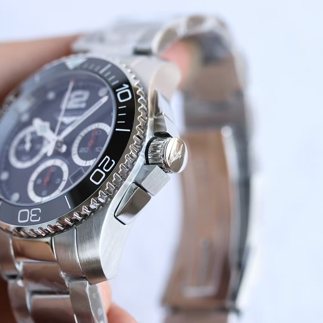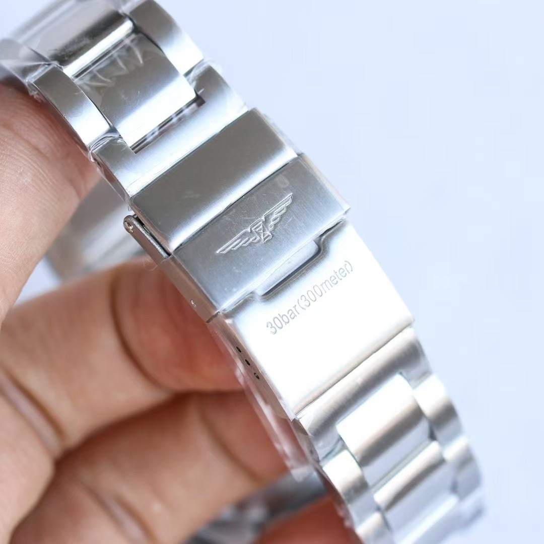 The watch case, measuring 41 x 12 mm, is flawlessly crafted in stainless steel with superb finishing. The ceramic bezel boasts a premium feel, and the three-dimensional markings and beveled details are perfectly balanced.