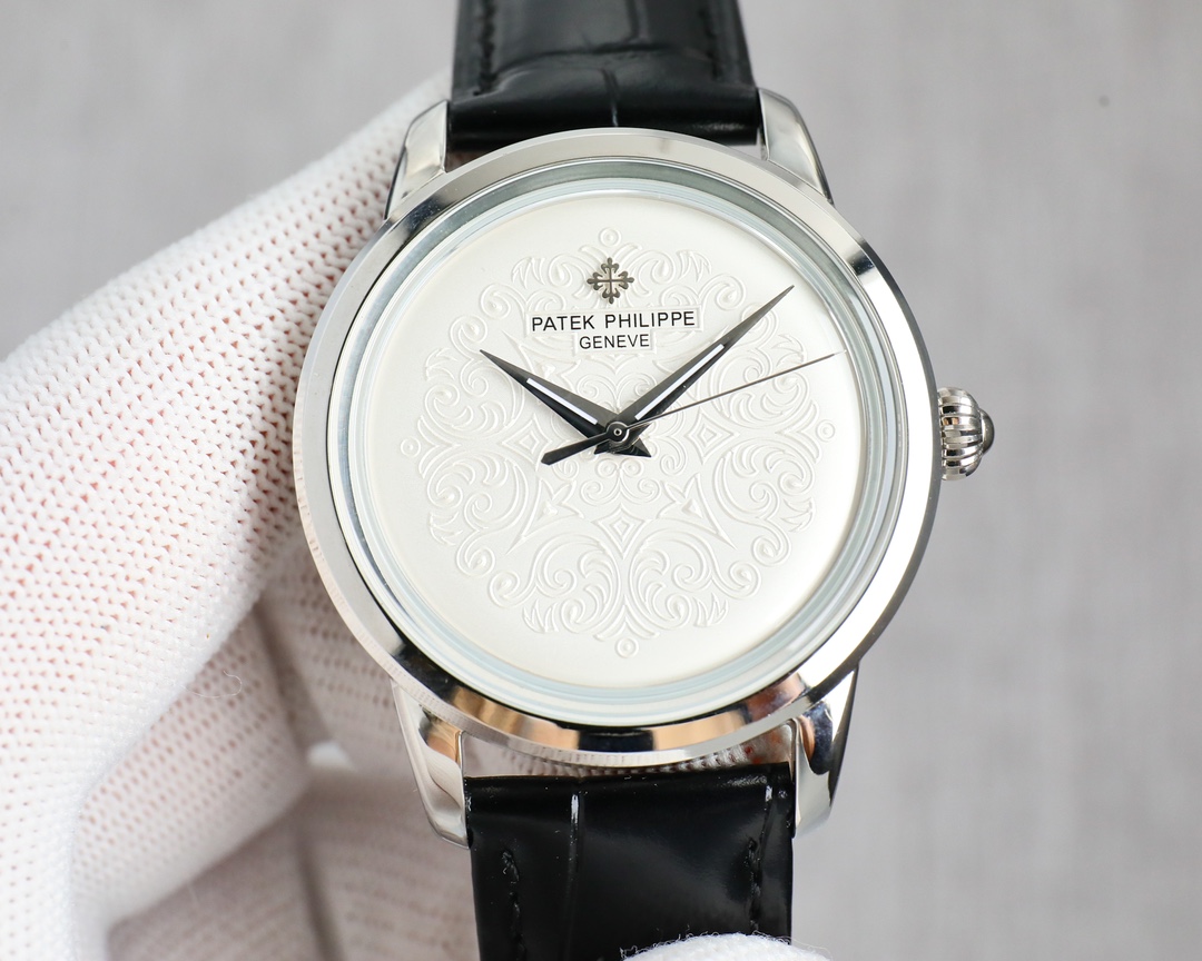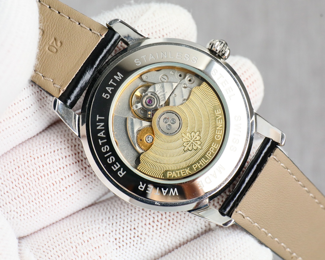 This ultra-thin men's automatic mechanical watch features a genuine Japanese 9015® movement with a frequency of 28,800 vibrations per hour. It has a 40mm diameter (original size) and an ultra-thin 8mm profile. It's crafted with Italian calfskin leather and a domed glass case. It's also highly water-resistant to 50 meters.