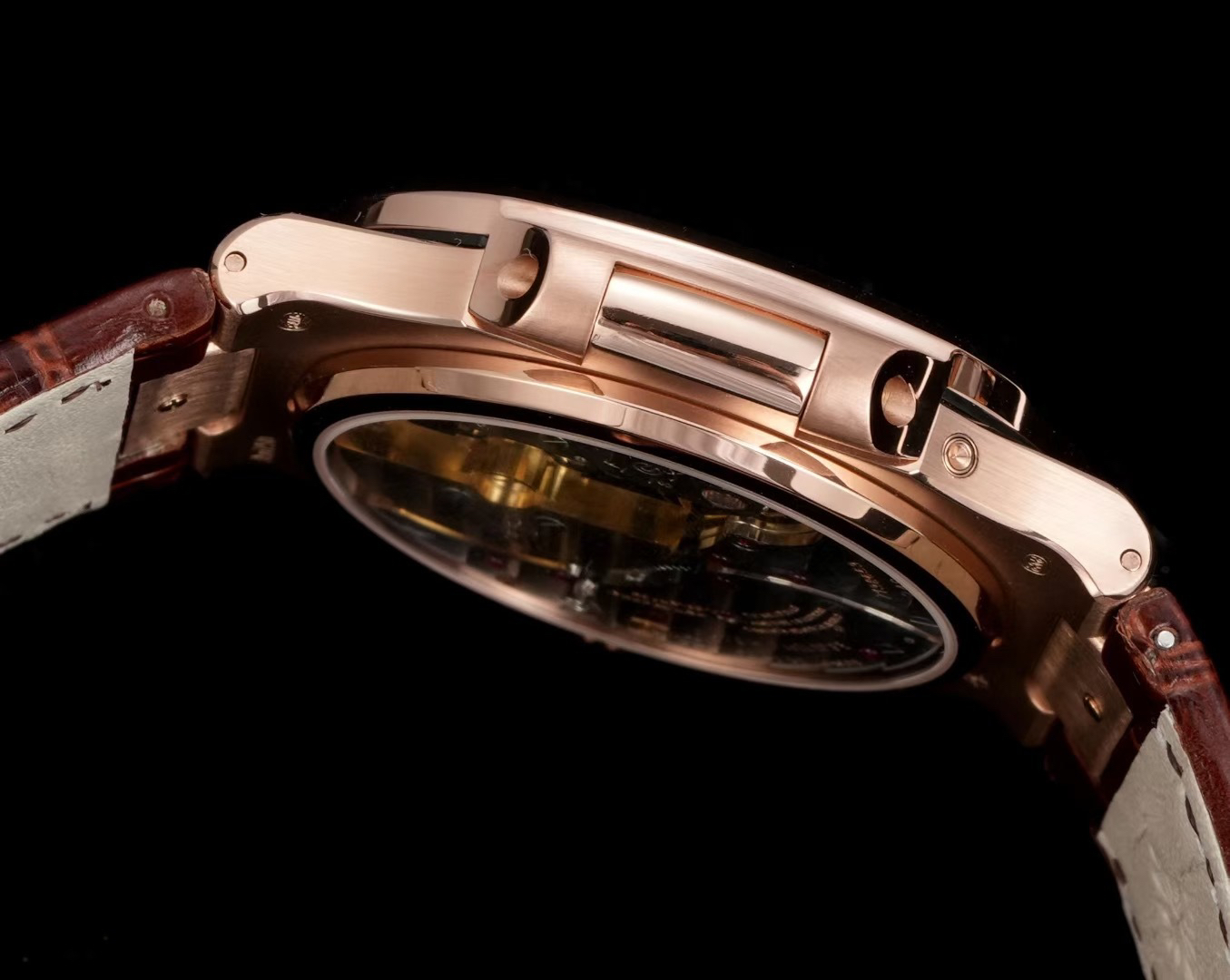 It features the Cal.240 IRM C LU genuine pearl rotor automatic movement. The entire movement consists of 265 parts and vibrates at 21,600 times per hour. The case size is 40mm. It uses a combination of brushed front and polished side finishes, creating distinct layers. The lugs are beveled with an eagle beak design, showcasing exquisite craftsmanship!