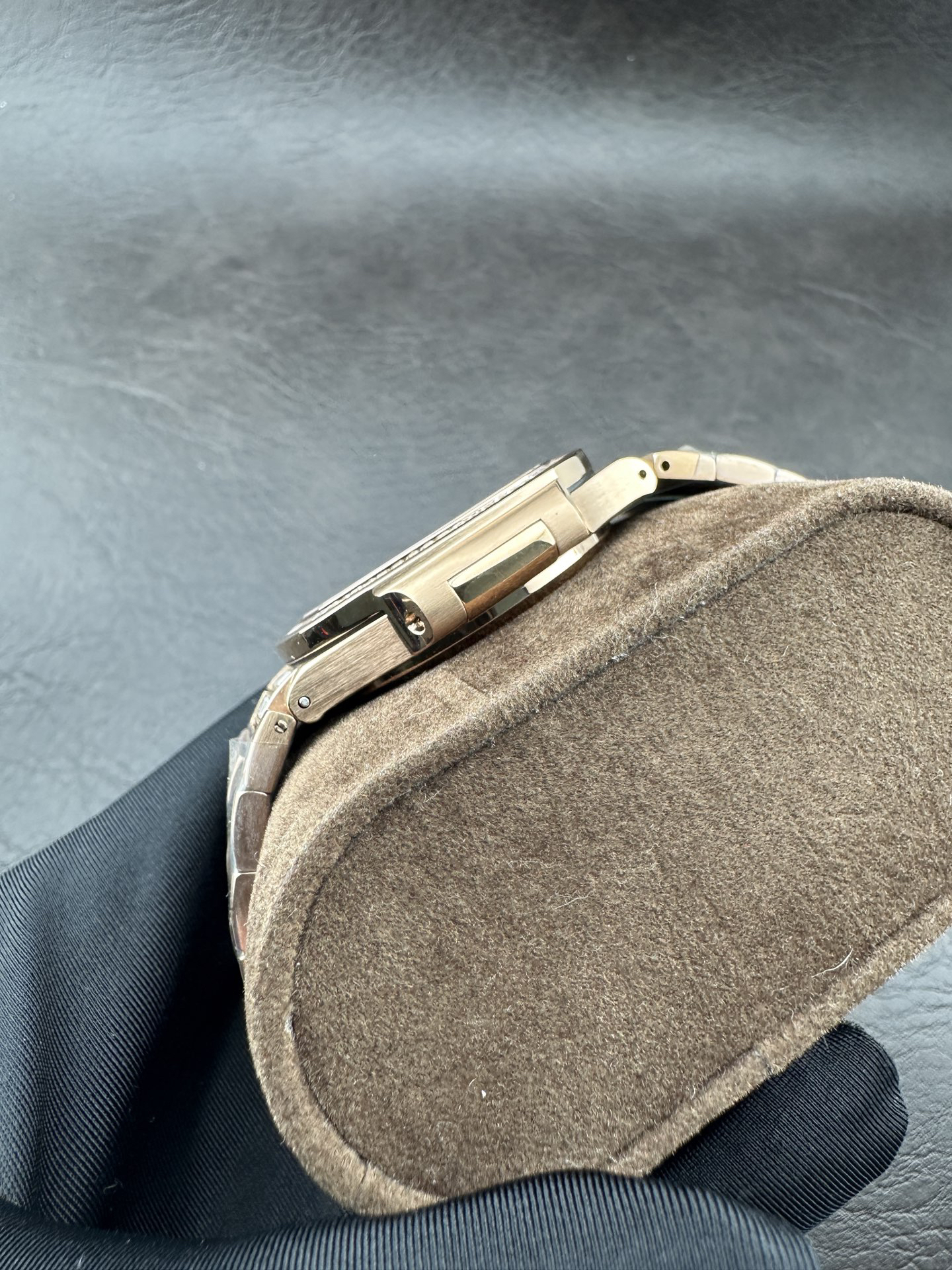 A true definition of understated luxury, this timepiece is a work of art on the wrist, perfectly blending sporty energy with elegant style. The central large seconds hand operates with precision and smoothness, showcasing core performance; the 35.2mm gold-plated case is set with dazzling T-square diamonds, exuding a striking yet understated quality; the dial is also adorned with T-square diamonds, and the date window at 6 o'clock is clear and practical, demonstrating impeccable attention to detail.