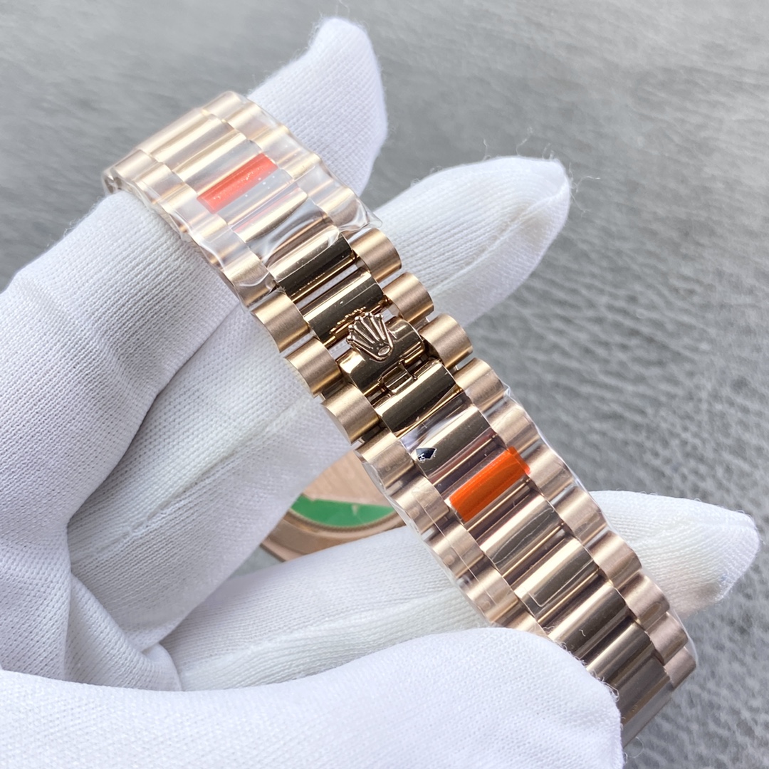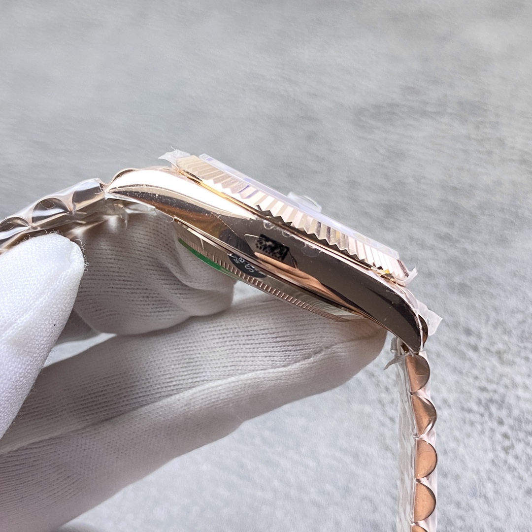 Everose gold, powered by the Tianjin Seagull 2836 movement, clear glass, accurate date display, hands with a central axis, and three-dimensional bezel. 40mm diameter.