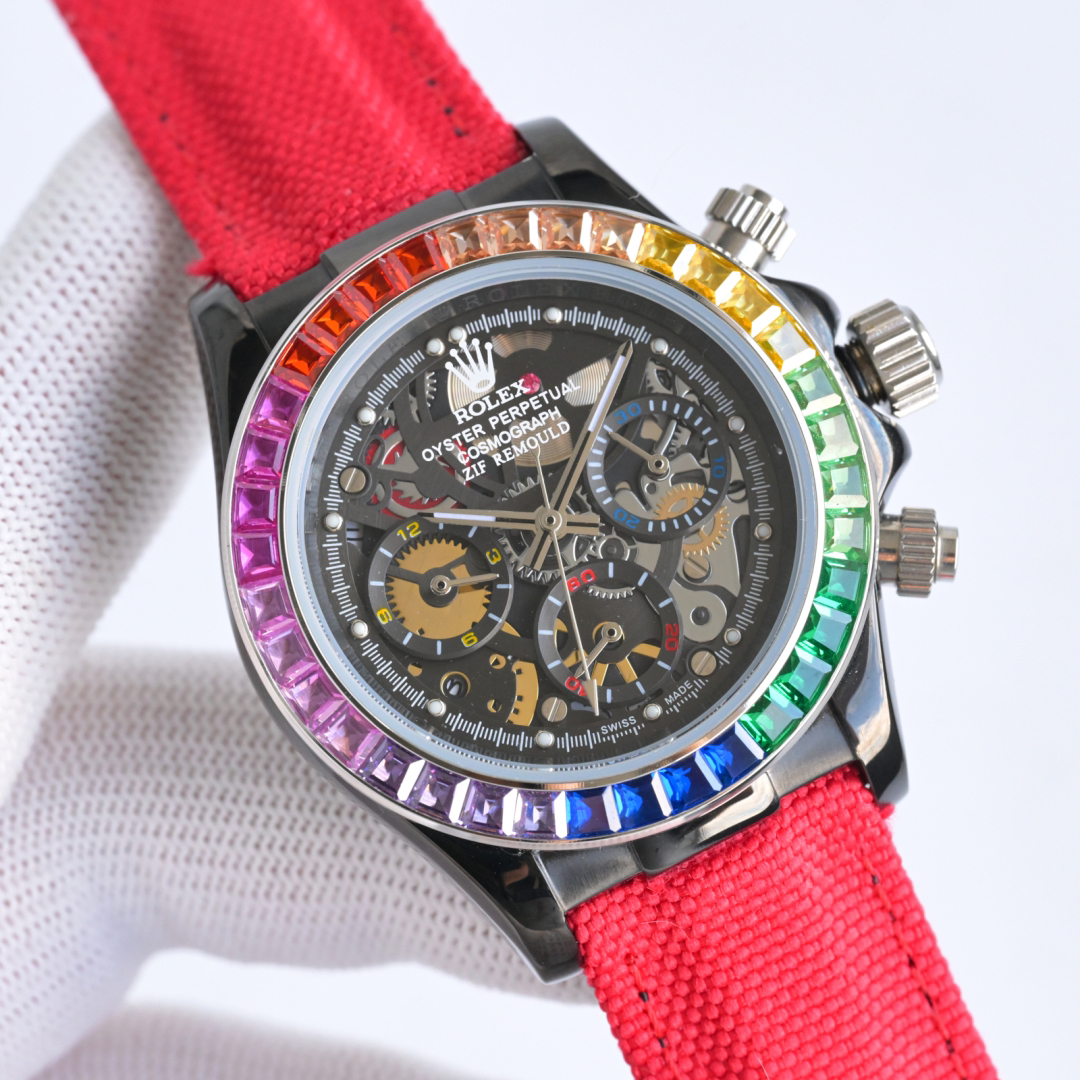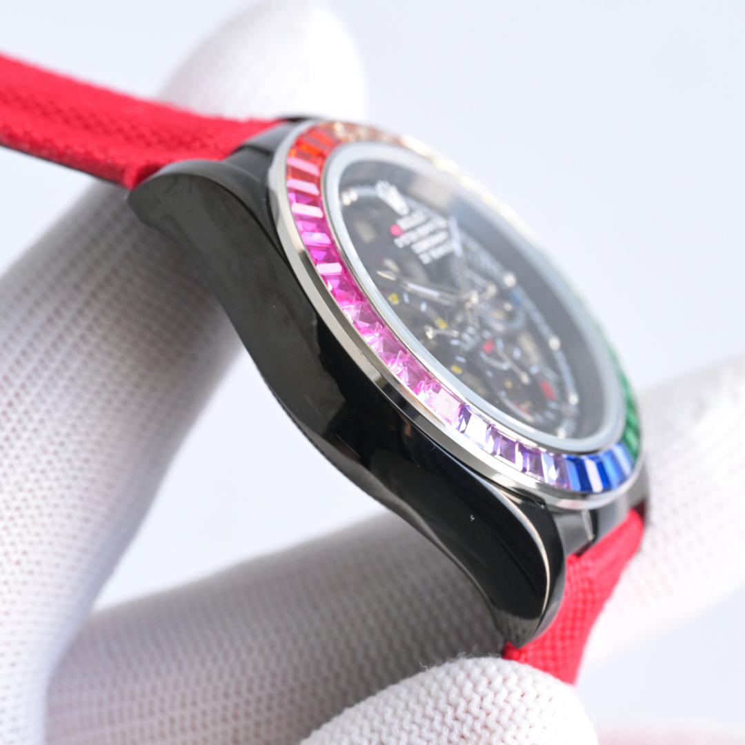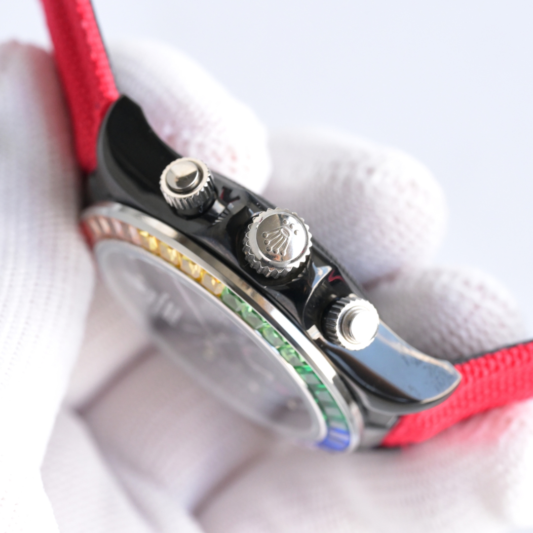 316L stainless steel case, 43mm diameter, mineral-coated glass for scratch resistance, super luminous lume, Japanese multi-function quartz movement, imported rubber strap. The Rolex Daytona is irresistible; a timeless classic! A multi-function quartz watch, the perfect luxury gift.