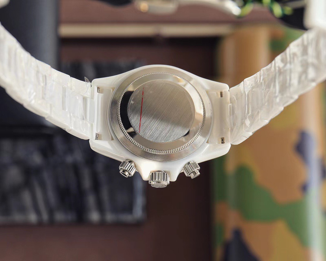 Daytona series, ceramic case, 43mm, sapphire crystal, Japanese multi-function chronograph quartz movement, ceramic strap.