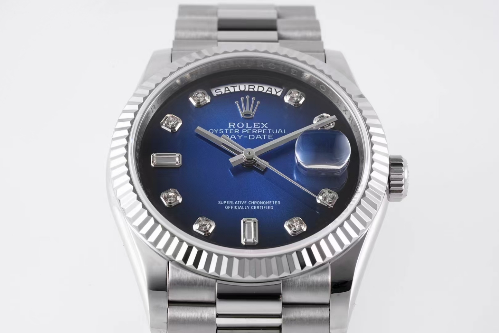 11mm thickness; 36mm case diameter; 18ct gold dial set with diamonds, including square-cut diamonds at 6 and 9 o'clock; One-piece middle case, screw-down case back and winding crown; Top-notch craftsmanship, each strap perfectly fits the lugs, providing maximum comfort to the wrist.