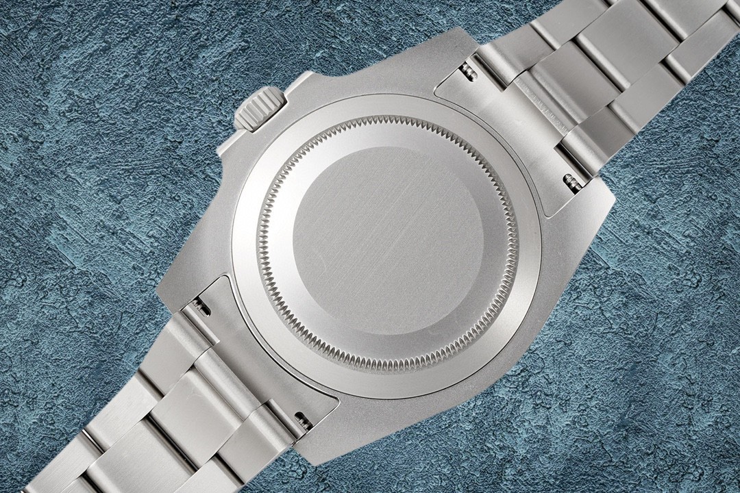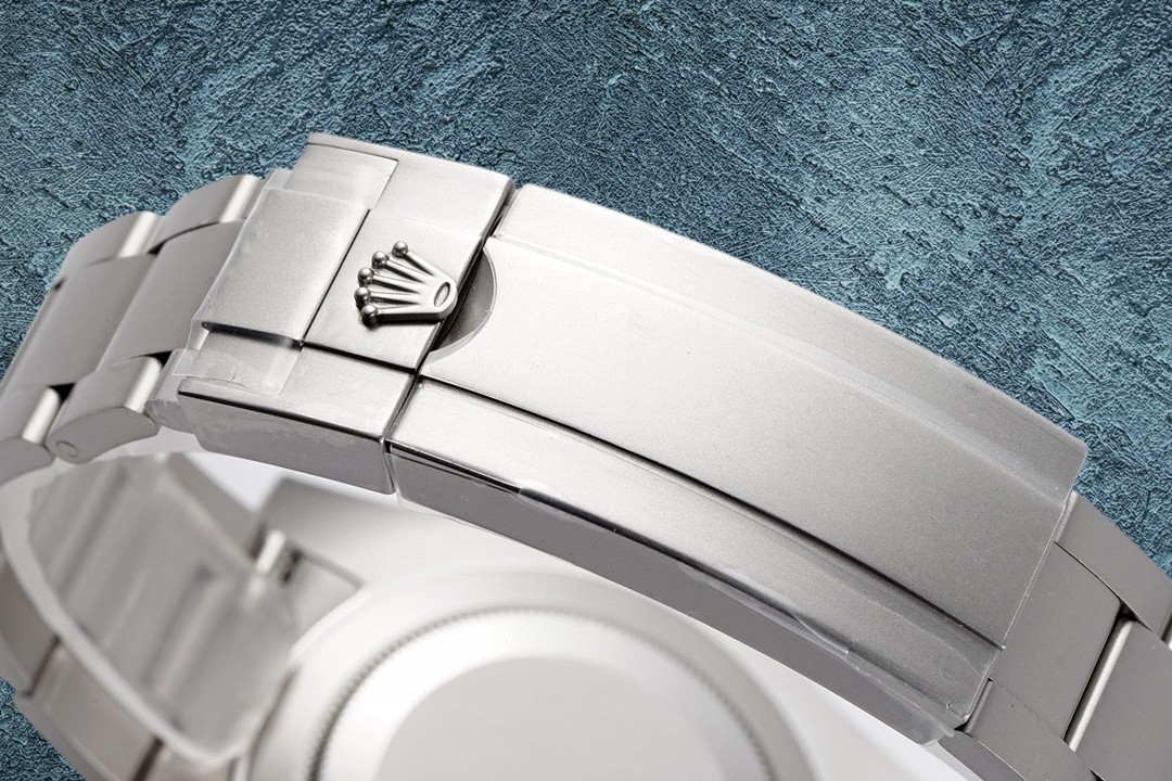 The watch features a crystal-clear BGW9 Swiss Super Luminous Disc and a silver case back. The entire watch is crafted from 904L stainless steel, with a sandblasted case and bracelet finished in a matte gray finish. It is powered by the new 3135 movement.
