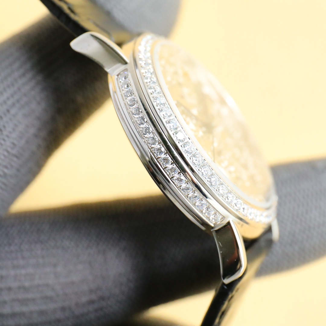The strap is made of select Italian top-grain cowhide! The case diameter is 38mm. The case is set with imported zircon stones, sparkling and equipped with a fully automatic Swiss-made engraved movement! Precise timekeeping! Water resistant to 50 meters! A collector's item for watch enthusiasts! Suitable for business professionals from all walks of life!