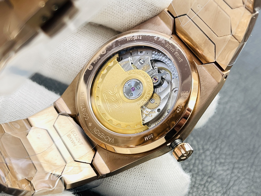 Movement: The Vacheron Constantin 24552 movement is meticulously decorated from the bridges to the steel wheels. The automatic rotor is plated with 22k gold and engraved with the number "222".