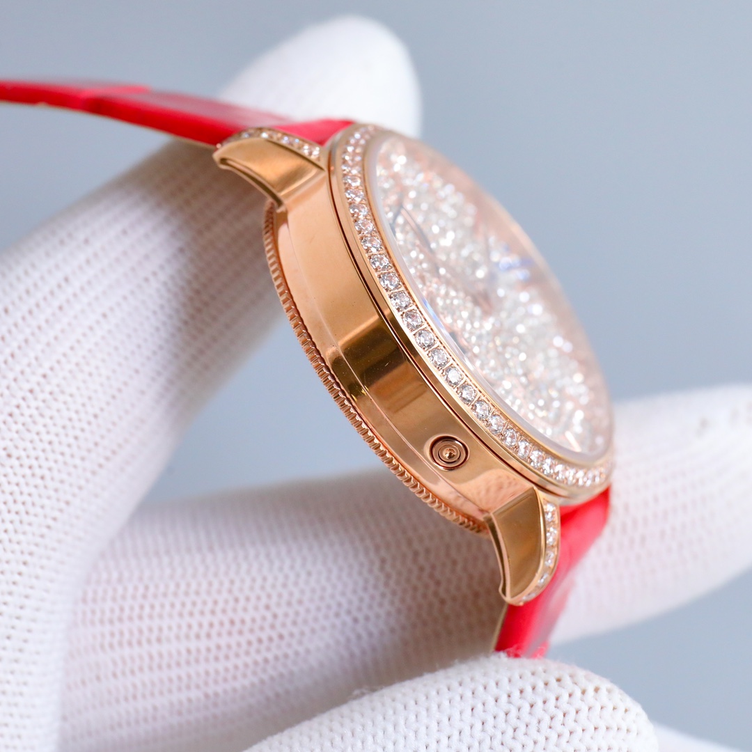 The watch is also paired with an understatedly elegant Italian calfskin leather strap; its graceful and feminine design makes it an excellent choice for everyday wear.