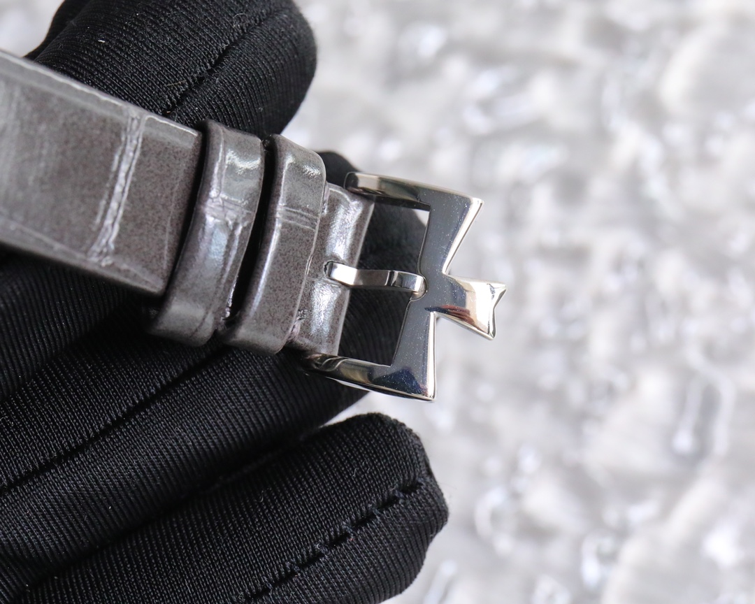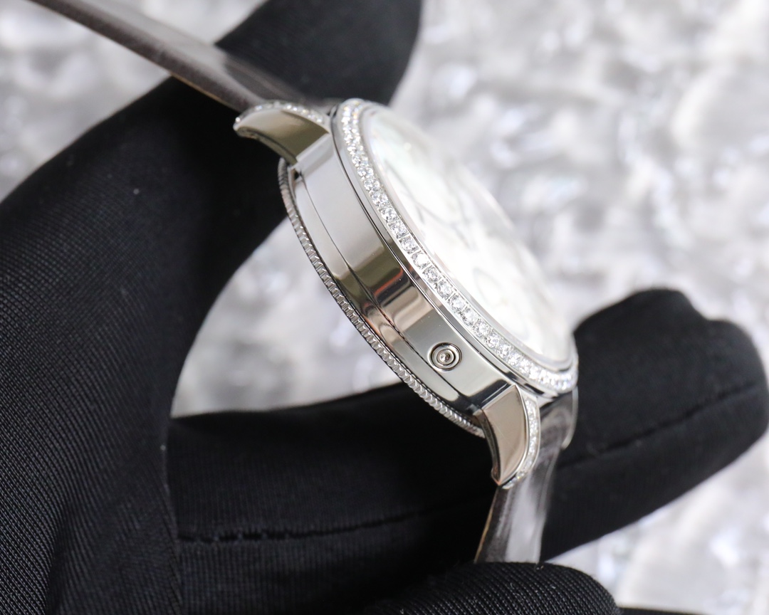 The watch is complemented by an understatedly elegant Italian calfskin leather strap, its graceful and feminine design making it a perfect choice for everyday wear.