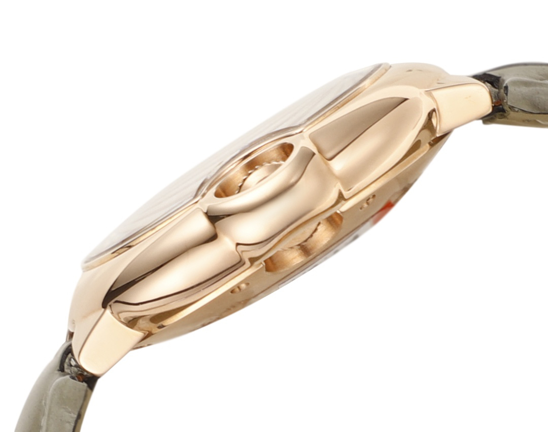 Equipped with either the NH05 or Swiss 2671 movement, two options are available: 33mm and 36mm standard sizes. Both come with a leather strap and a rose gold steel bracelet. The 33mm version is 10.06mm thick, while the 36mm version is 12.05mm thick. The dial is made of 316L stainless steel, with a double-domed sapphire crystal and blued steel hands. The sapphire crystal turns red when exposed to ultraviolet light.