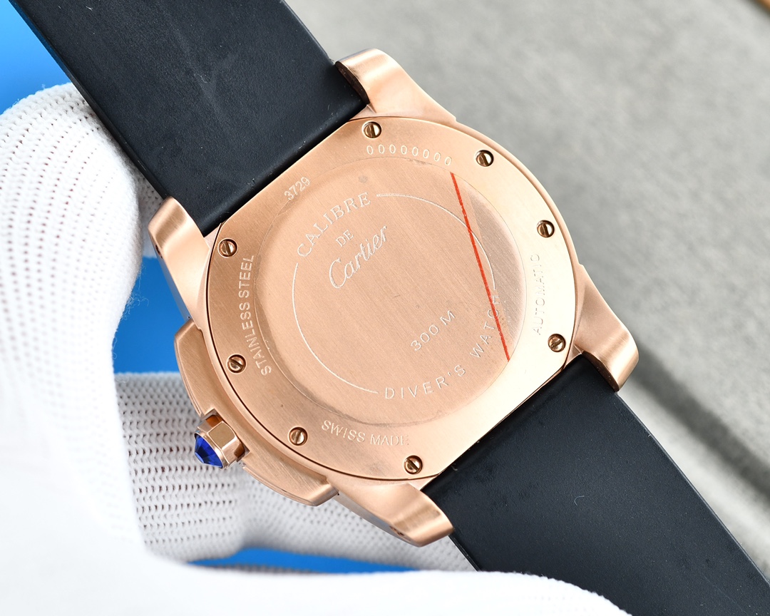 A 316L stainless steel case, ceramic super-luminescent bezel, high-performance luminous dial, date display with white lettering on a black background, sapphire crystal with blue luminescence, 42x11mm size, powered by the Cal.1904-PS automatic mechanical movement, imported natural rubber strap, Super LumiNova luminous hour markers—this dive watch combines style and sportiness with a rugged and powerful presence.