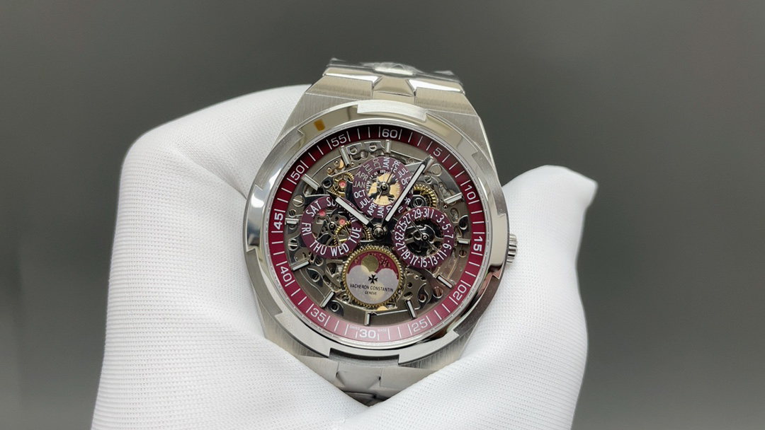 Featuring a distinctive rotor, this timepiece displays a date, day, month, and moon phase, all fully functional. The 41.5mm diameter dial boasts sapphire crystal on both the front and back, a sunburst-brushed dial with a minute track, and an inner minute bezel. Changing the strap is easy with a simple lever between the strap and lugs. The dial is also genuinely adjusted. The 316L stainless steel case and screw-down crown, along with the slightly oval round shape, make it a signature design element of the Overseas. A timeless classic, a true hero's spirit, you deserve it.