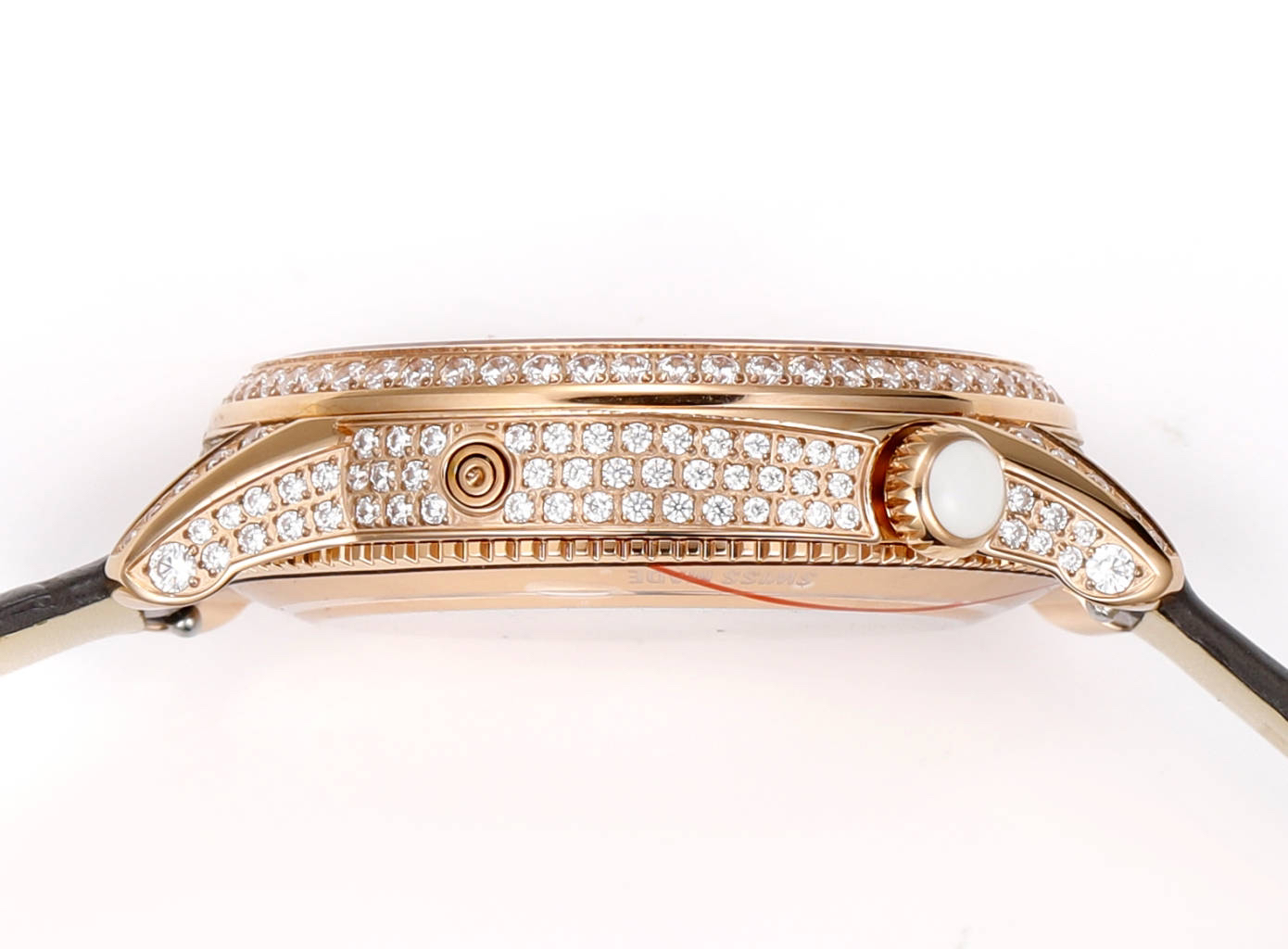Savoring the elegance of time, embracing the beauty of day and night. This ultra-thin mechanical women's watch continues the series' style! The opalescent dial is adorned with dazzling diamonds, and the pleated finish, meticulously crafted over months using the traditional tapestry technique, is exquisitely finished. The crown is embellished with a cabochon-cut moonstone symbolizing composure and tranquility. The off-center round dial, sparkling with diamonds, displays time in a dreamlike manner, while delicate mother-of-pearl is sculpted into fluffy white clouds. With a diameter of 37mm, an automatic movement, and a perfectly executed moon phase function, this elegant and luxurious timepiece is meticulously crafted for discerning female connoisseurs.